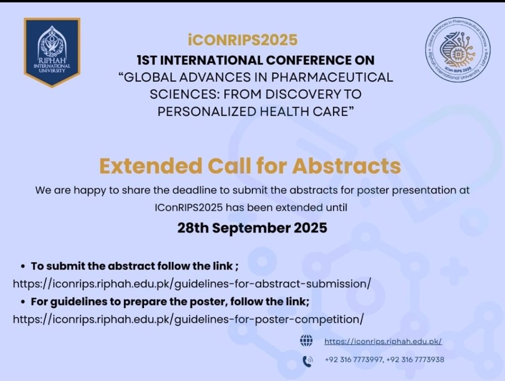 Organized by: Riphah Institute of Pharmaceutical Sciences, Riphah International University, Lahore Campus